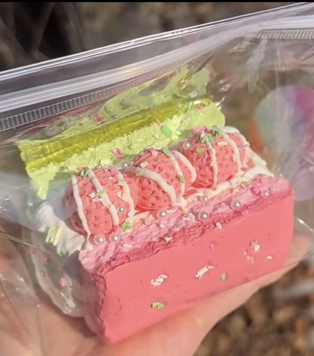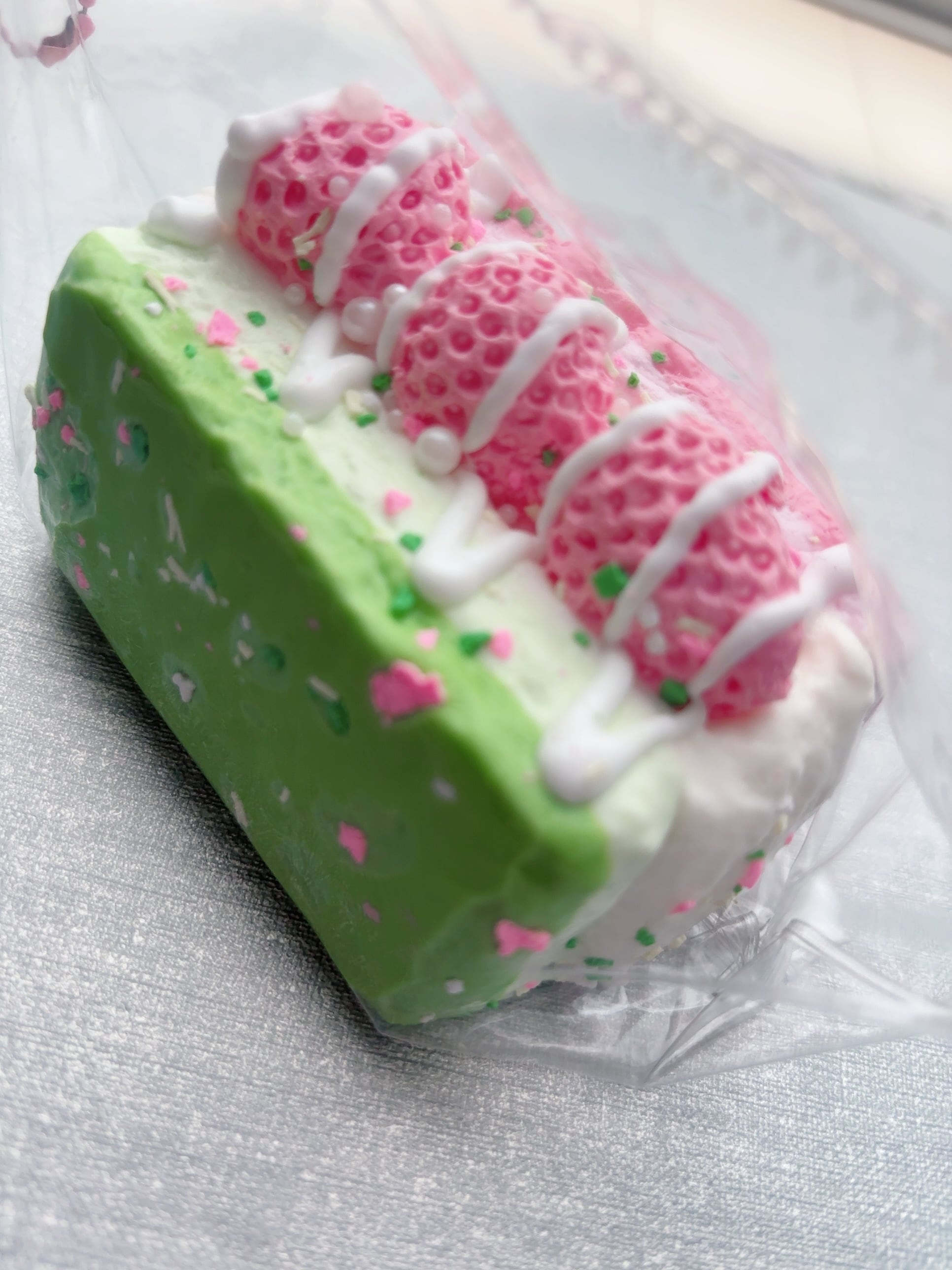いちごが乗った3層のスクイーズです!